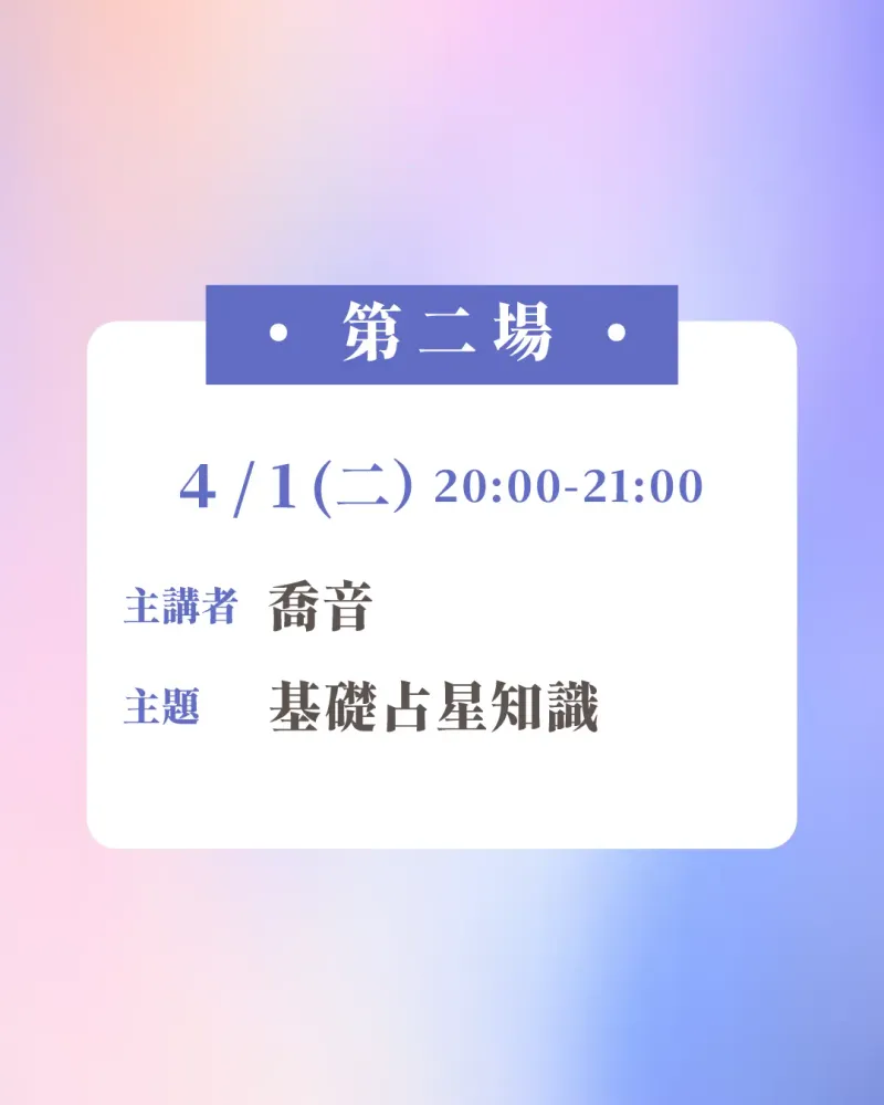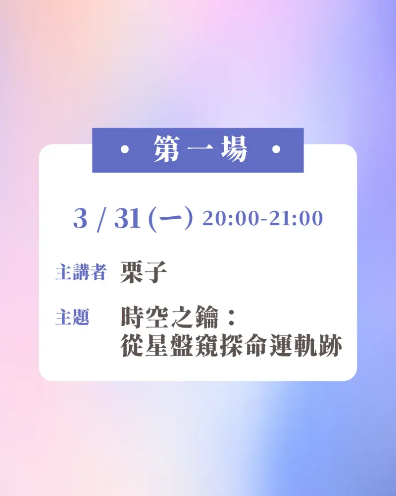 我們將從基礎開始,帶你掀開命運的一角,理解為何星座運勢只能提供片段的參考,而真正的星盤分析卻能深入你的內在動力、人際關係,甚至是人生方向。如果你曾對占星感興趣,但不知如何踏入這個領域,這場沙龍就是你的起點。讓我們一起打開「時空之鑰」,從星盤中尋找屬於你的命運線索。