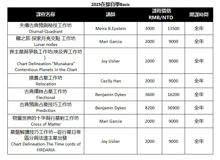這組由 SATA 占星學院推出的 2025 年在線自學課程,提供你兩種方案——「Basic」與「Premium」,依需求選擇你的學習模式。