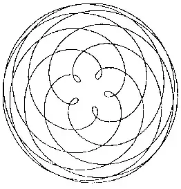 玫瑰圖案的一小部分顯示了金星逆行所編織的五「心」圖案中的一顆「心」。圖中的每個點表示每日的位置,每50天插入了一個較大的點。因此,形成一個心形圖案需要400余日,而兩個環形成之間的會合週期為584天。